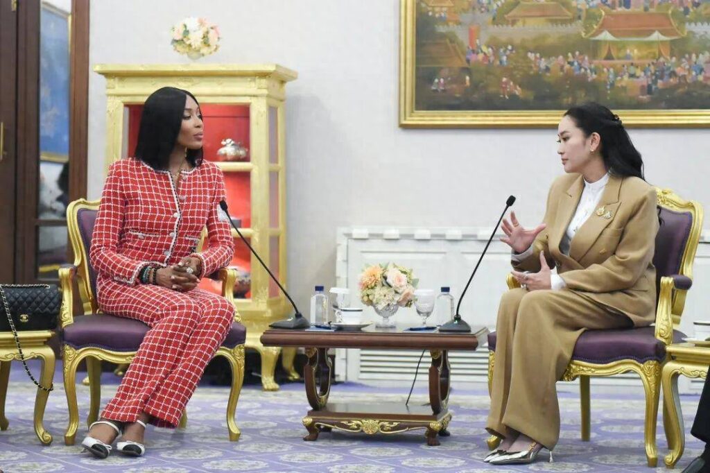 娜奥米·坎贝尔赞同道,这些传统元素可以进一步发展并拓展其潜力。总理随后询问娜奥米最喜爱泰国的哪些方面,并询问这是否是她首次来泰。娜奥米回答说,她曾于1994年访问泰国,并且多次来访。她非常喜爱泰国人民,认为泰国人非常友好,且十分喜欢这里的气候。