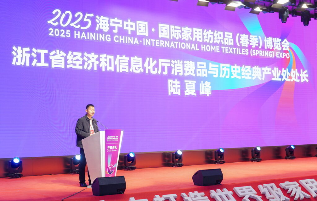 春潮涌动之际,2025 年海宁中国・国际家用纺织品 (春季) 博览会在海宁许村盛大开幕。浙江省经济和信息化厅消费品与历史经典产业处陆夏峰处长出席开幕式,并致辞。
