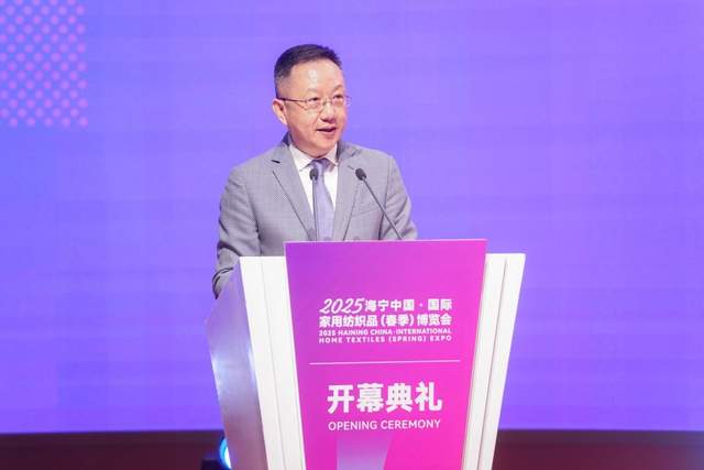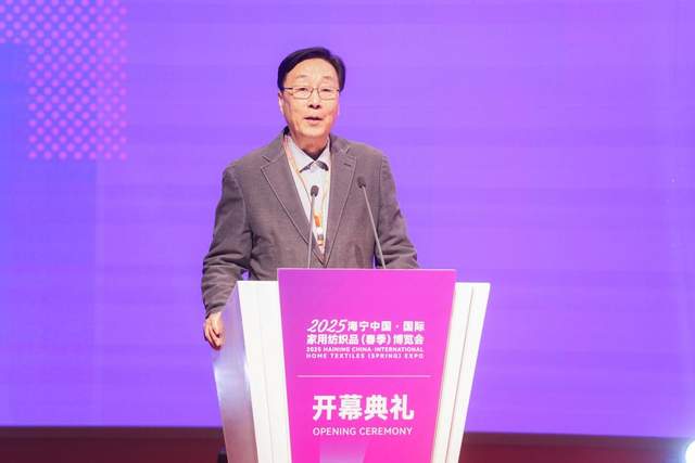 中国纺织工业联合会副会长杨兆华致辞表示,海宁家纺展的成长史恰是中国家纺产业飞跃发展的生动写照,从区域性展会到引领家纺潮流的风向标,从单一贸易平台进化为集商贸合作、技术创新、文化交融于一体的综合平台,海宁家纺展始终秉持开放心态,勇于变革,以创新思维引领行业前行。杨兆华认为,面对中央经济工作会议提出的“九大任务”,家纺产业作为民生之基,责任重大。针对海宁许村家纺未来发展,他提出以下建议,一是聚焦内需拉动,激活消费潜力;二是深化科技赋能,加速智造转型;三是提升区域品牌,重塑竞争优势。