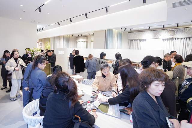 云嵌尚品门店内人山人海,热闹非凡,来自全国各地的客商络绎不绝,询问声此起彼伏。这里展示了众多高端精美的布艺产品,让人目不暇接。云嵌尚品总经理杨利红表示,高精密绣花产品作为主推款式,以精湛的工艺和独特的设计吸引了众多目光,“定位花”产品设计巧妙地将浙江杭州西湖的实景引入其中,让人们在欣赏布艺之美的同时,也能感受到那份浓郁的江南风情和意境。为了在本届家博会取得更好的效果,云嵌尚品提早布局,推出了6个版本新品,包括国潮风、宋风雅韵、维多利亚、安卡拉羊毛等,每一款都独具特色,可满足不同客户的个性化需求。凭借卓越的产品品质和独特的设计风格吸引了2000多家经销商的青睐。