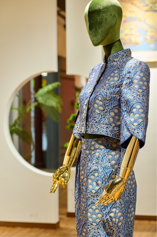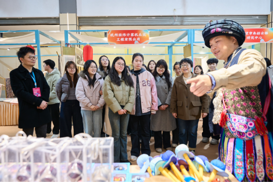 作为校企联合传承非遗文化的成果之一,“非遗东方 锦韵潮城”纺织非遗创意与时尚展再次亮相活动现场,重点展示纺织(非遗)文创产品、非遗服饰及面料,让现场观众深入了解非遗文化的独特魅力,进一步推动非遗元素在现代时尚设计中的应用,助力许村家纺产业实现非遗文化传承与创新发展。