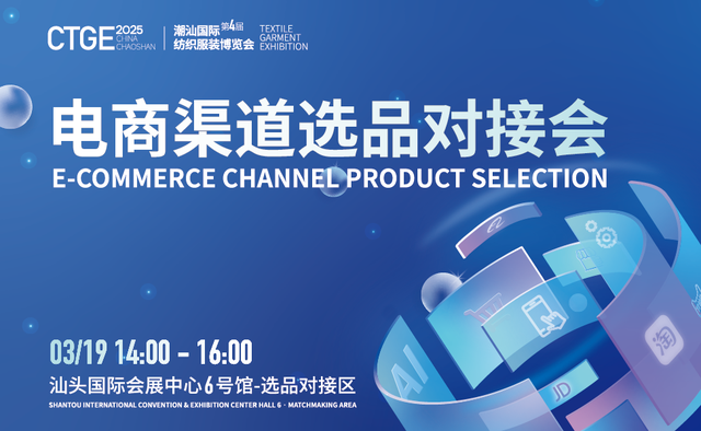 为帮助企业发展线上全渠道,促进纺织服装产业更好发展互联网经济,3月19日下午14:00-16:00,潮汕服博会组委会将开展电商渠道选品对接会。本次活动将通过展品展示、线下对接等形式,助力纺织服装企业把握电商发展新机遇,为“电商+产业带”融合发展赋能添力。