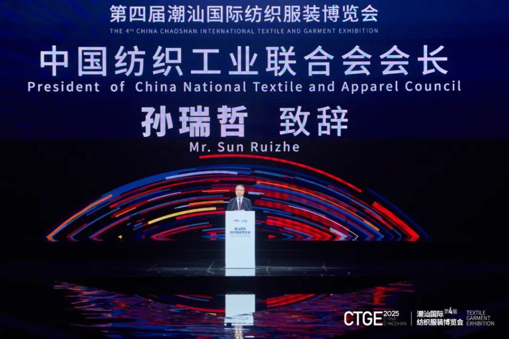 中国纺织工业联合会会长孙瑞哲表示,当前,中国纺织正围绕科技、时尚、绿色、健康的定位,发展新质生产力,建设现代化产业体系。这与汕头“三新两特一大”的产业布局高度契合、同向同频。希望汕头纺织行业以本次博览会为契机,在新时期有更大担当作为。一要守正创新,打造制造新优势;二要文化赋能,构筑时尚新高地;三要前瞻引领,开辟产业新蓝海。四要全球发展,构建价值新空间。