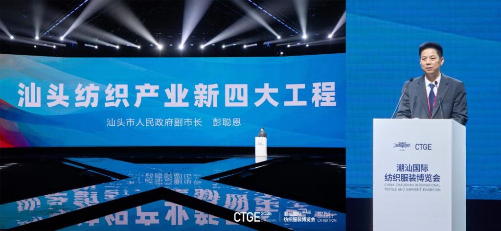 为进一步提升产业综合实力,开幕式上汕头市人民政府副市长彭聪恩发布了汕头纺织服装产业“新四大工程”。汕头将围绕打造具有全球影响力的纺织服装产业高地,对标“国内领先、世界一流”,大力实施新“四大工程”,建设“双基地双中心”(新质面料制造基地、国际纺织数贸基地、智能云仓中心、人才融创中心),提升“出处+聚处、存量+增势、产能+科技”的叠加效应,形成从面料研发到品牌销售的闭环,做大规模、做优品质、做广渠道、做强生态,以“锦绣事业”织出高质量发展的勃勃生机。