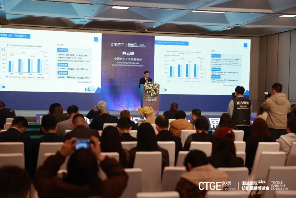 中国针织工业协会林云峰会长作针织行业经济及贴身服饰产业发展趋势报告,他表示,针织行业整体营收稳健上扬,利润提速增长,贴身服饰行业规模持续扩大。同时提出生物基纺织新材料、智能可穿戴将成为新的发展趋势。