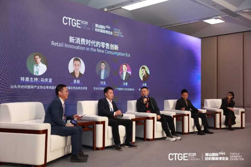 此外,本次大会开展了圆桌论坛,把握新消费时代的破局密码。汕头市纺织服装产业协会常务副会长马庆宣主持本次论坛,香蜜闺秀景毅、草本初色刘宝、广州服装协会马睿、陈列共和大晴共话零售创新。