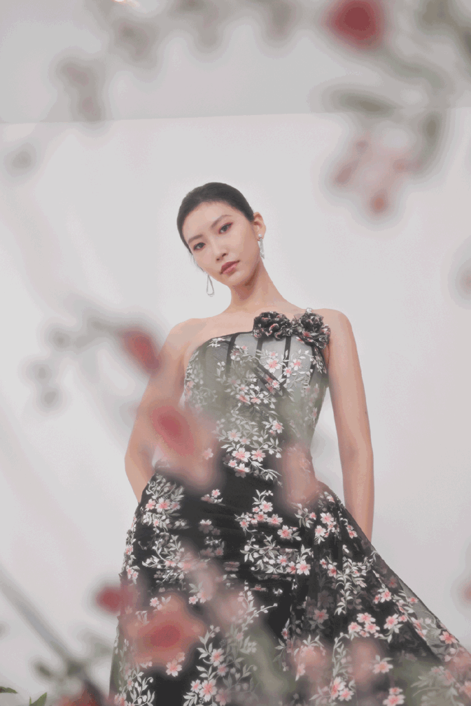 「轻奢礼服系列」以流畅线条与简约设计凸显女性的独立与自信;「新中式系列」则通过改良剪裁与非遗元素的结合,展现古典与现代的完美交融;万众瞩目的LAFAVEUR芸想典藏之作——「繁花高定礼服系列」将以纷繁盛大的独家开发花卉刺绣与立体廓形,诠释女性如花般绽放的优雅与力量。