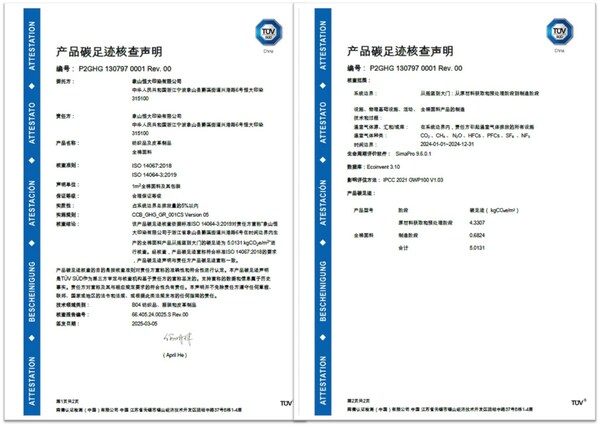 近日,TÜV南德意志集团(以下简称”TÜV南德”)为象山恒大印染有限公司(以下简称”象山恒大”)的HD62851全棉面料颁发产品碳足迹核查声明。该声明的颁发不仅彰显出象山恒大对于环境保护责任的具体践行,更体现了其在引领纺织业可持续发展潮流与积极贡献于全球碳排放削减方面的行业引领力。同时,TÜV南德凭借专业技术,携手象山恒大在纺织领域内迈出的节能减排、绿色转型的坚实步伐。