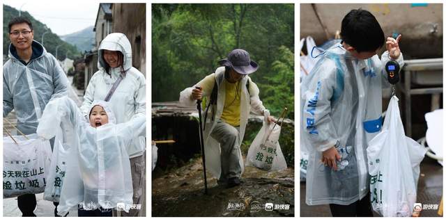 真正的户外爱好者,不会让垃圾成为山野的“纪念品”,即使徒步旅程在大雨中难度增大,也没有浇灭守护者的热忱。