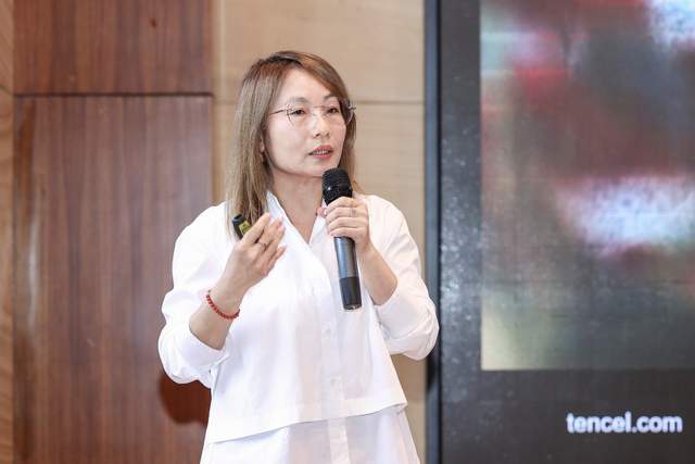 天丝™的品牌势能如何转化为合作企业的市场竞争力?兰精中国区纺织事业部市场推广负责人李琦重点介绍了天丝™品牌焕新战略。品牌焕新确保天丝™保持竞争力,并在不断变化的市场格局中继续发展,这一战略的迭代有助于保持品牌忠诚度,并通过保持相关性和不断迭代吸引新客户。同时她指出,天丝™不是纤维类型或通用面料名称,而是一个纤维素纤维品牌,仅兰精集团生产的莱赛尔纤维和莫代尔纤维才可称为天丝™纤维,保护天丝™商标也是保护价值链合作伙伴的利益。全新的天丝™品牌,将继续携手产业链合作伙伴一道,加强品牌保护,帮助每个消费者轻松地做出正确的选择。
