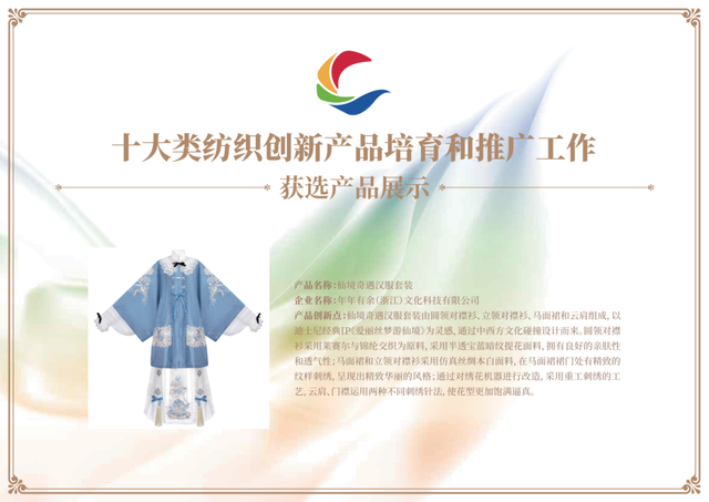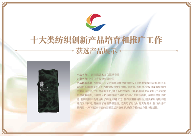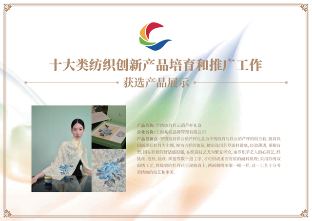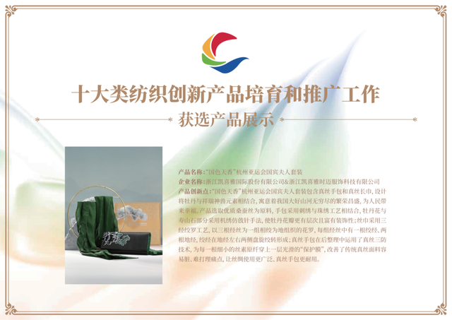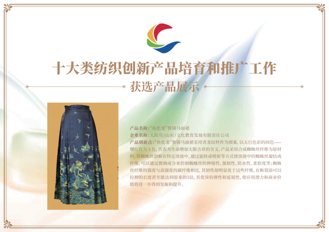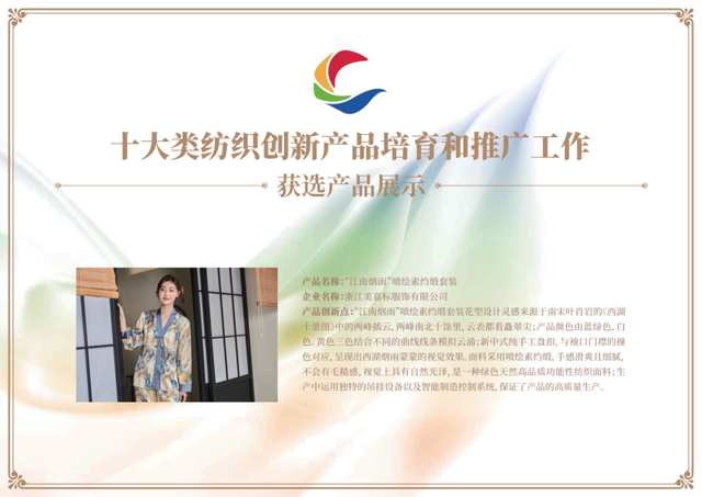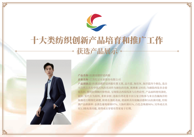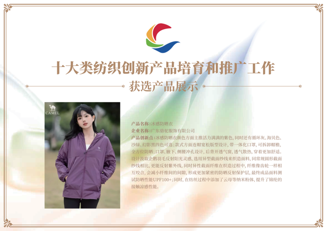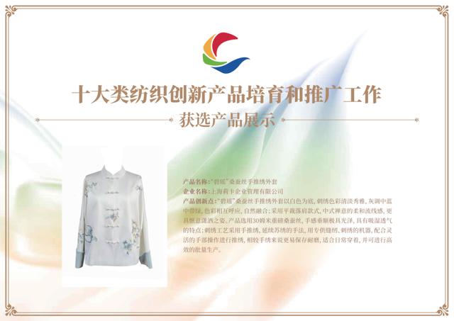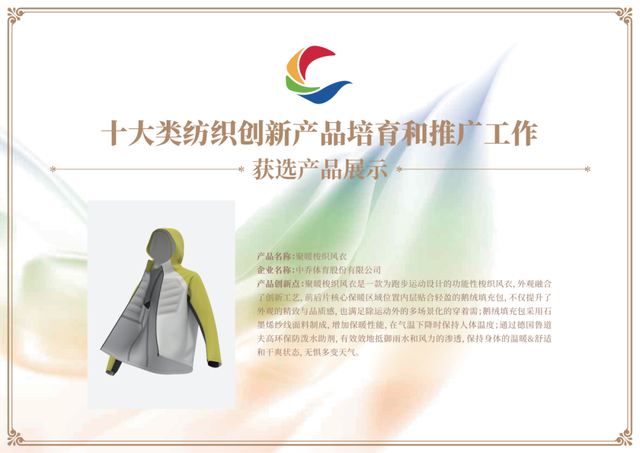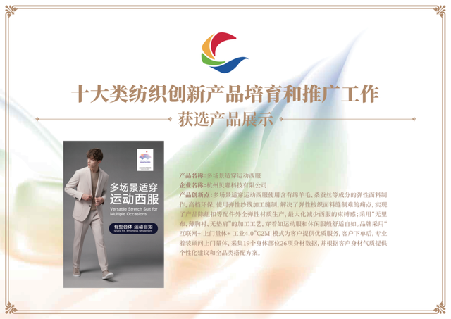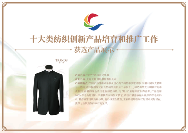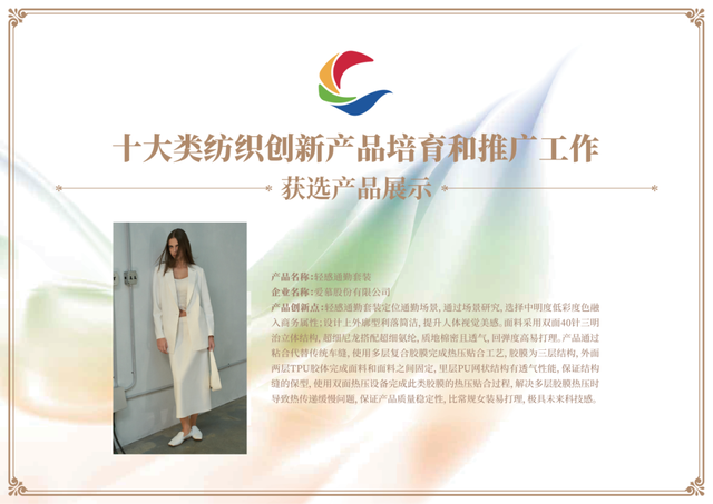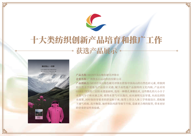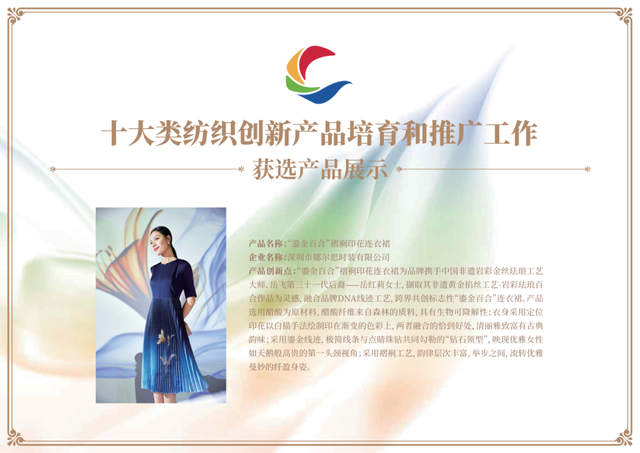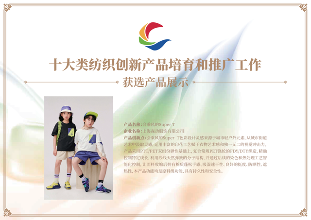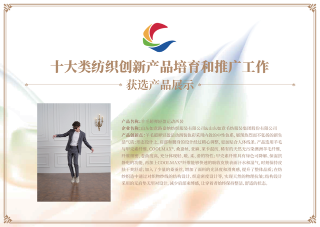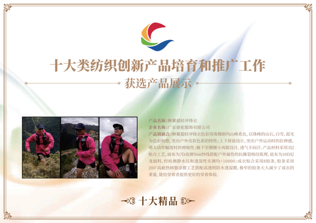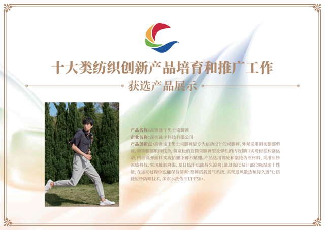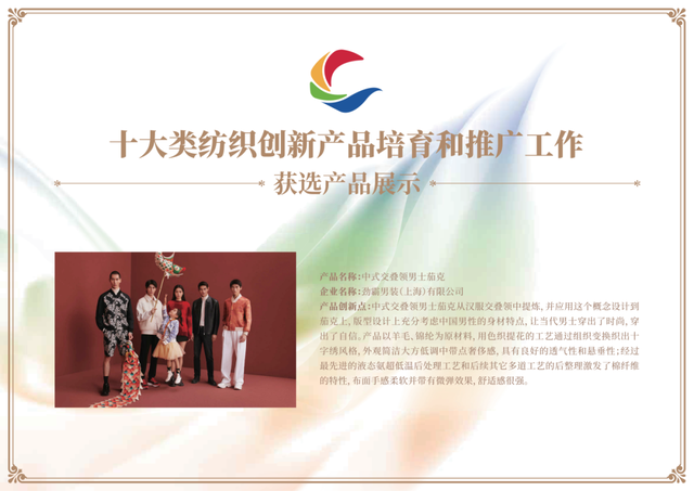 工业和信息化部消费品工业司委托中国纺织工业联合会生产力促进部连续开展年度十大类纺织创新产品培育和推广工作,倡导以市场需求为导向的技术创新与设计创意,发挥创新产品的示范引领作用,提高创新产品的品质满意度和品牌信任度。该项工作以引领消费的导向性和产品推广的权威性,得到了全行业的广泛关注,有效提升了行业企业的创新开发意识,推动了“三品”战略的高效实施。