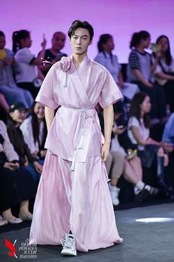 而休闲运动系列更是别出新意。混搭设计打破了传统边界,“宋制褙子+牛仔裤”“扎染襦裙+小白鞋”等组合,展现出日常实用性与时尚活力。灰绿和浅灰色等冷色系服饰,营造出轻松自然的氛围。模特们青春洋溢的笑容和动感的步伐,让汉文化在动感韵律中自然流淌,将气氛推向最高潮。