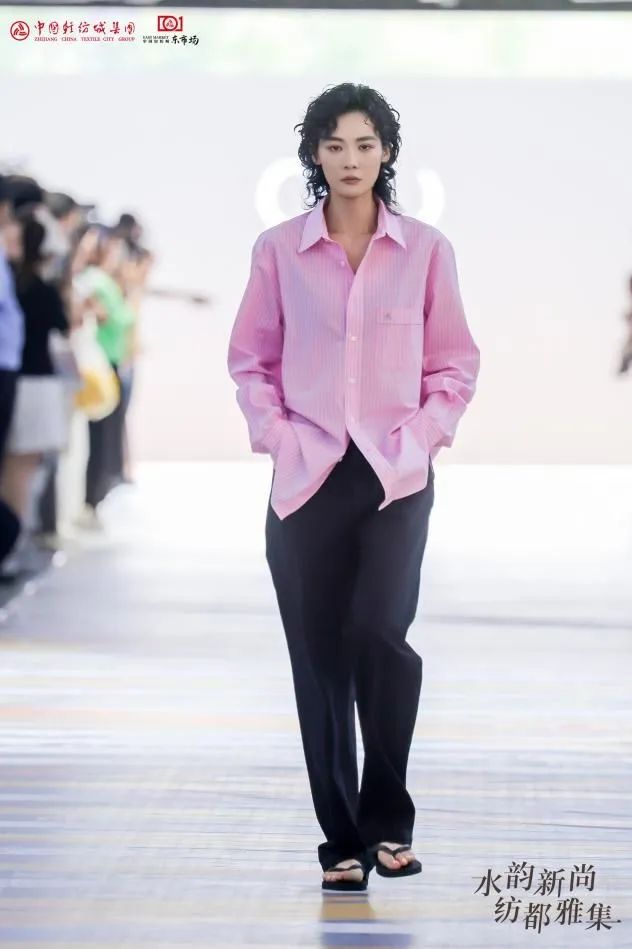值得一提的是,本次走秀T台纵穿整个东市场主通道,巧妙连接东市场室内与“水韵纺都”沿河区域,形成一道亮丽的风景线,既体现了现代时尚感,又融入了东市场的文化底蕴。同时,现场设置“东市霓境”静态展,以运河沿岸的花草树木为背景,动与静之间,尽显柯桥纺织时尚魅力。
