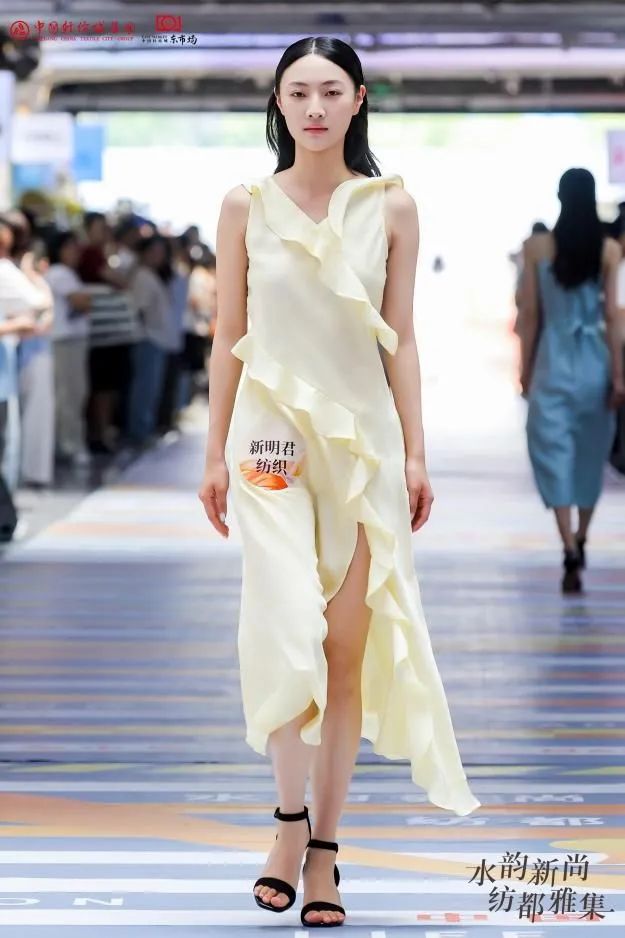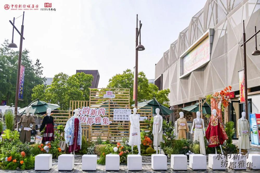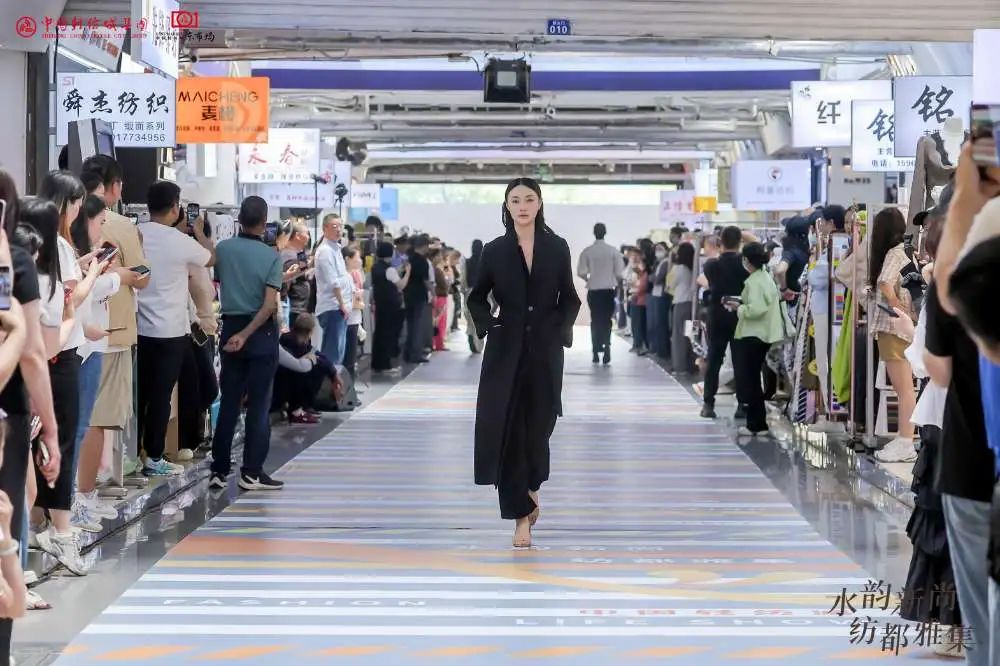 本次活动以“水韵纺都”为魂,涵盖面料雅集、国际设计师联名秀、旗舰经营户成衣发布、成衣静态展及全天候对接沙龙等多元化创新形式。活动现场,法国设计师联袂东市场商户闪亮登场,前沿时尚潮流涌动,水岸T台纵穿整个东市场主通道,重构纺织商贸新体验,尽显中国轻纺城东市场作为“中国时尚女装面料第一站”的品牌影响力和时尚引领力。
