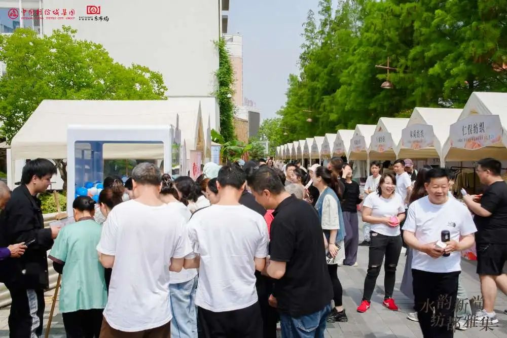 同时,本次活动与2025柯桥春季国际纺博会同期举办,通过“展会+市场”联动,进一步提升了人流量和影响力。“每次柯桥纺博会我都会去展会现场,逛完展再到轻纺城市场看看,深入对接供应商,本次恰好赶上‘水韵新尚·纺都雅集’活动,东市场的企业创新能力和配合能力强,对客户提出的要求能够精准地捕捉,并且快速反应,上午已与多家东市场面料企业进行沟通,找到了自己心仪的面料。”南京映山红服饰有限公司副总经理王双说道。