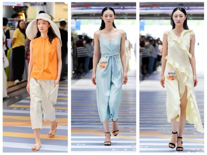 本次活动以“水韵纺都”为魂,涵盖面料雅集、国际设计师联名秀、旗舰经营户成衣发布、成衣静态展及全天候对接沙龙等多元化创新形式。活动现场,法国设计师联袂东市场商户闪亮登场,前沿时尚潮流涌动,水岸T台纵穿整个东市场主通道,重构纺织商贸新体验,尽显中国轻纺城东市场作为“中国时尚女装面料第一站”的品牌影响力和时尚引领力。