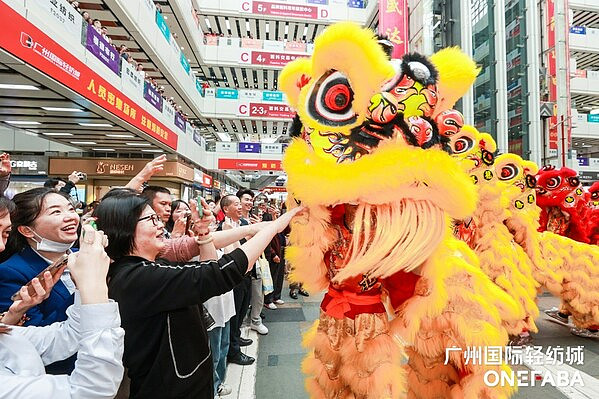 表演顺利结束后,醒狮与财神们一起兵分逾70个小队,分头前往轻纺城内各楼层为商户们逐一进行旺场采青,传递财气、喜气、运气、福气,共同把开年的好彩头送达到城内的每一个角落。商户们也都早已做好准备,提前布置了寓意着生财利市、兴旺发达的采青阵,还有各式满载吉利好意头的互动道具,现场精彩不断、欢笑不止。期间有商户代表分享道:”每年开年广州国际轻纺城的醒狮旺场活动都是我们最期待的,不仅极大带旺了城内人气,也给整个中大纺织商圈注入了满满的信心、活力与动力。”