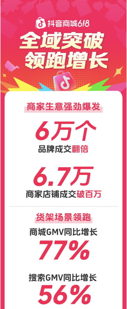 从全域增长到商家普惠,从品类破圈到内容革新,抖音商城618以“好内容+好政策+好商品”为杠杆,助力商家突破天花板,让每一个经营者都能找到属于自己的新增长。未来,抖音电商将持续以内容为纽带连接用户与商家,让不同生意都能在兴趣场景中找到爆发支点,为更多经营者开启长效增长新可能。