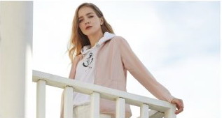 雾粉色的航海风立领夹克,搭配船锚印花T恤和白色休闲裤,憋了一冬的的少女心,就应该在这个美好的春天得以释放。