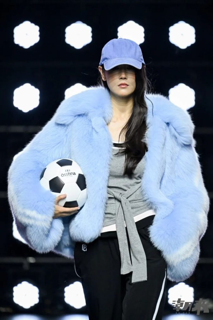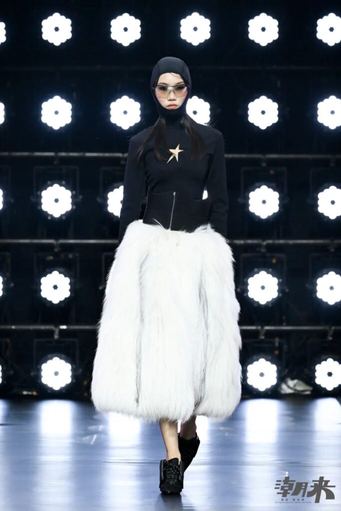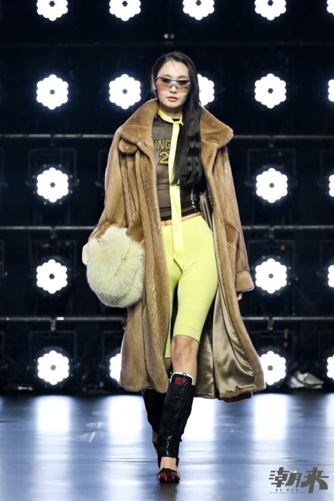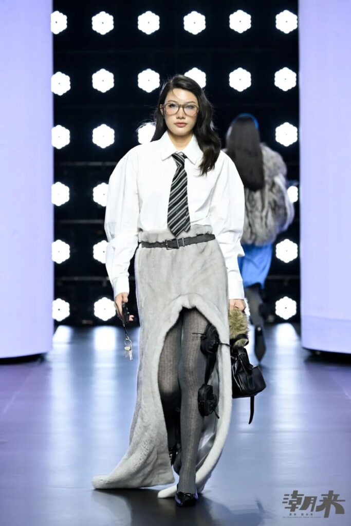 秀场上运动元素的率性碰撞、职场通勤的摩登重塑及色彩疗愈的情感表达,呈现出皮草在多元场景中的可能性。廓形上,精致短款、硬朗工装与柔美花苞收褶形成对比;工艺上,为呼应多元呈现,更借皮草镶花、机开抽刀等精湛工艺展开风格实验,将解构理念融入制作工序,既颠覆皮草传统视觉语言,更赋予其前所未有的当代活力与可塑性。