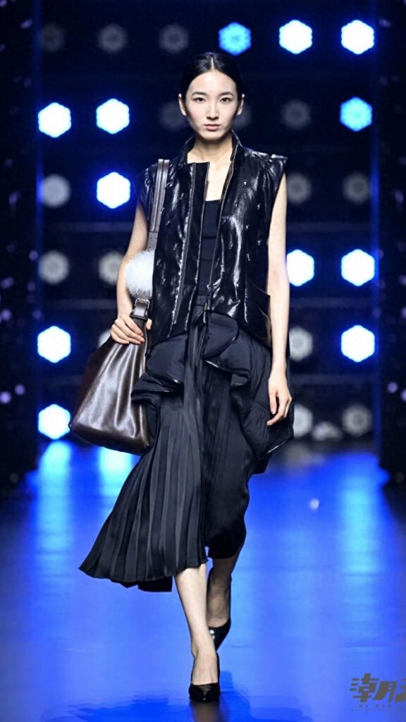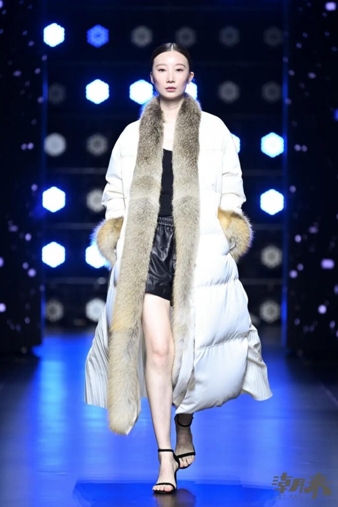 化作皮革的几何语言;让晨雾的氤氲,在面料肌理中游弋。皮衣、皮羽绒、羽绒和拼接……