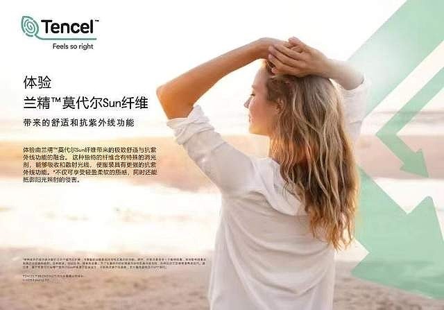 当功能性黑科技与绿色低碳相结合,将带来怎样的新体验?“兰精™莫代尔Sun纤维的面世,为行业带来了一种新的抵抗紫外线的方案。”兰精纤维(上海)有限公司总经理、兰精集团中国区纺织事业部高级商务总监胡焱钧介绍,兰精™莫代尔Sun纤维含有一种特殊的消光剂,倾向于吸收和散射光线,在具有适当结构的面料中使用这款纤维,可有效降低到达皮肤的有害紫外线辐射水平,具有防止皮肤晒伤、过早老化和避免皮肤癌等积极作用,大面积、长时间地保护人体,满足业界对高性能紫外线防护服的非石油基面料需求。