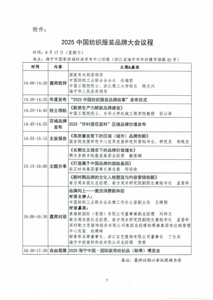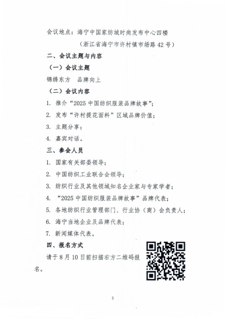品牌向上!2025中国纺织服装品牌大会将于海宁许村举行|参会报名进行中