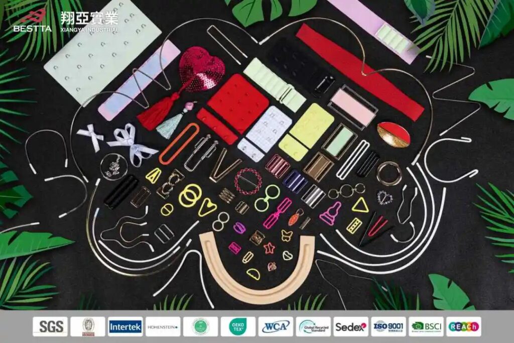 对于内衣泳衣客户,改良后的背扣、调节扣扣合更牢固且操作便捷,钢托与钢骨胶骨增强承托性与舒适度,花仔等饰品增添精致细节,提升产品竞争力。