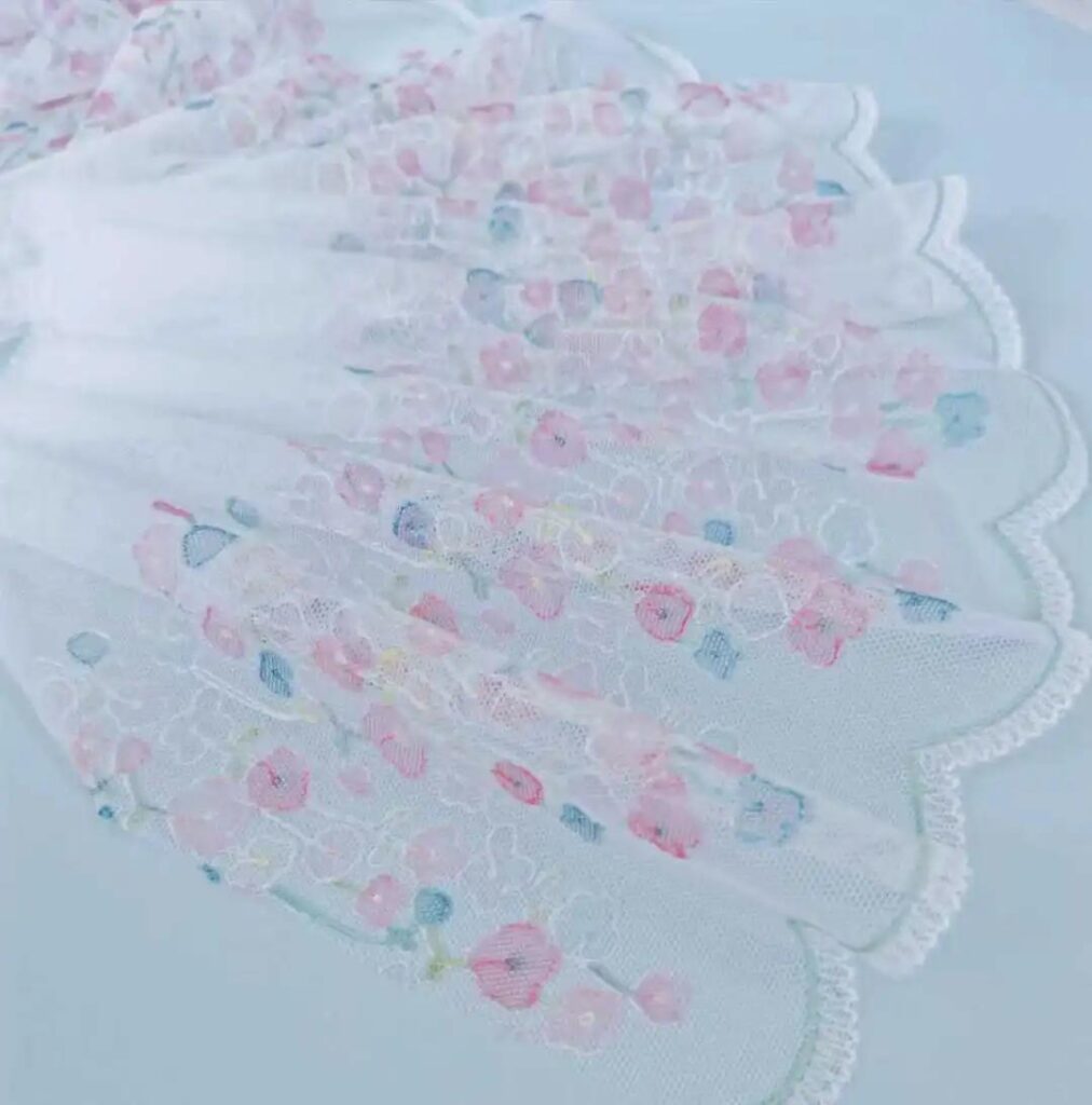 适合制作婚纱罩裙外层或春夏连衣裙的透视袖;花边部分可单独裁剪作为文胸上围装饰。