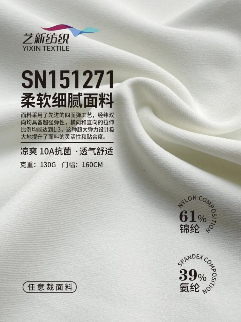 无论是制作运动服装还是休闲服饰,SN151271都能满足高弹性和舒适性的双重需求,是现代服装面料的优质选择。