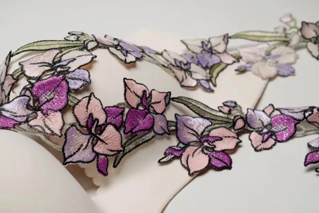 此款产品, 采用水溶绣花工艺,搭配丰富多彩的绣线,呈现花卉的自然形态与刺绣的精美。