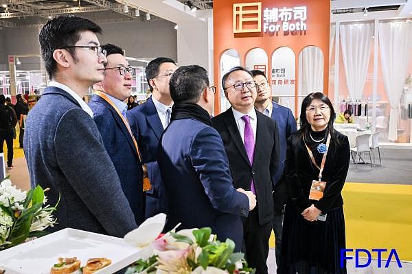 中国纺织工业联合会会长孙瑞哲、原会长王天凯、原副会长许坤元、副会长徐迎新,工业和信息化部消费品工业司一级巡视员曹学军,国家纺织产品开发中心主任李斌红、副主任陈宝建等领导莅临展区