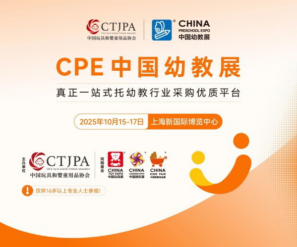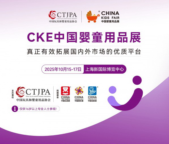 2025年10月15日至17日,由中国玩具和婴童用品协会(简称中国玩协)主办的CTE中国玩具展&潮玩展、CLE中国授权展、CKE中国婴童用品展、CPE中国幼教展(简称中国玩协四展)以“共享跨界资源、引领创新趋势”为主题,将汇集全球40多个国家和地区以及20大玩具、婴童用品主产区2500+展商携5400+品牌、2600+全球正版IP参展,展览面积覆盖上海新国际博览中心全部展馆达23W平方米,齐聚国内外10W+专业观众,其中,海外买家预计超10000人,吸引央媒、主流媒体等300+海内外媒体和1000+KOL联合传播。