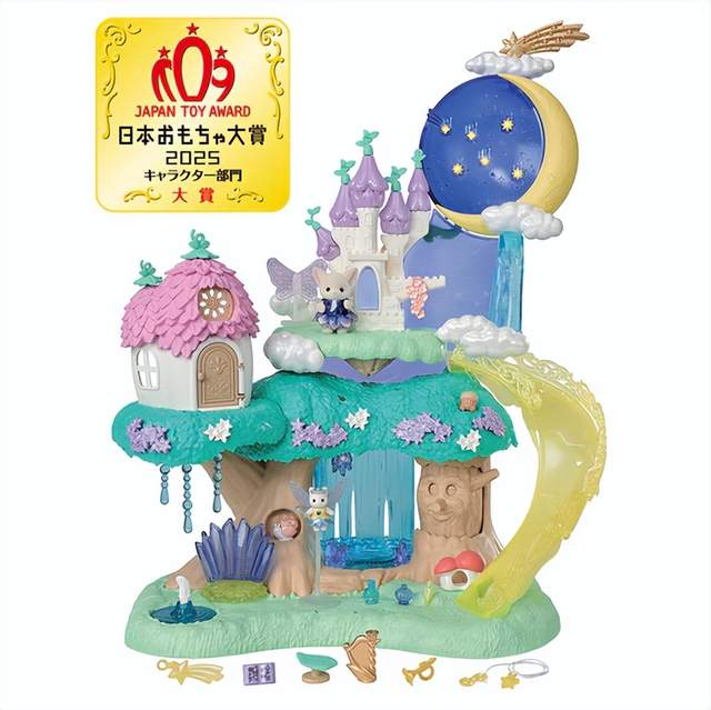 获奖原因:该产品展现了一座月夜下神秘妖精之森中的魔法城堡。套装包含星之妖精、穿着星空服饰的耳廓狐宝宝,以及瀑布、流星、花屋等丰富场景。通过羽之钥匙可召唤妖精,乘流星穿越瀑布抵达城堡,展开奇幻冒险。孩子们可以玩 “抓住流星前往月亮城堡” 的角色扮演游戏,且无需电池就能实现星星发光的设计,获得了好评。此外,产品包含独特的妖精人偶、木头爷爷、橡果等丰富的全新人偶配件,也得到了认可。