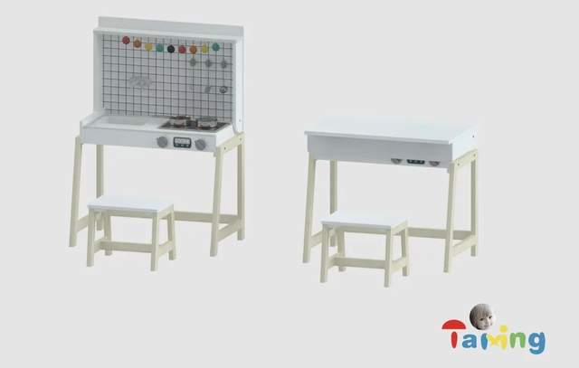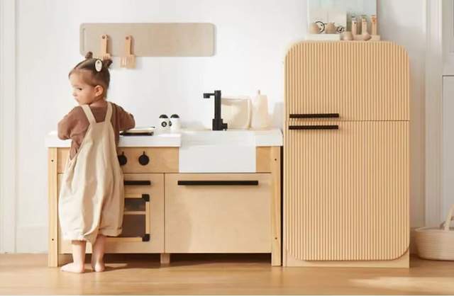 浙江泰星儿童玩具有限公司自主研发设计的木制仿真过家家厨房主要使用绿色环保可持续的材料比如新西兰松木等,不仅仅在智力开发上具有独特魅力,产品还搭配油烟机、电磁炉、煤气灶、微波炉等模拟真实设备启动的声音和灯光,为了让孩子们的厨房体验更加真实,还为孩子增加了学习用的桌子和凳子,这套玩具基于日常厨房和学习场景搭建,为孩子们沉浸式体验做饭的乐趣的同时,也可以兼顾学习,充分感受生活的乐趣,真正做到劳逸结合。
