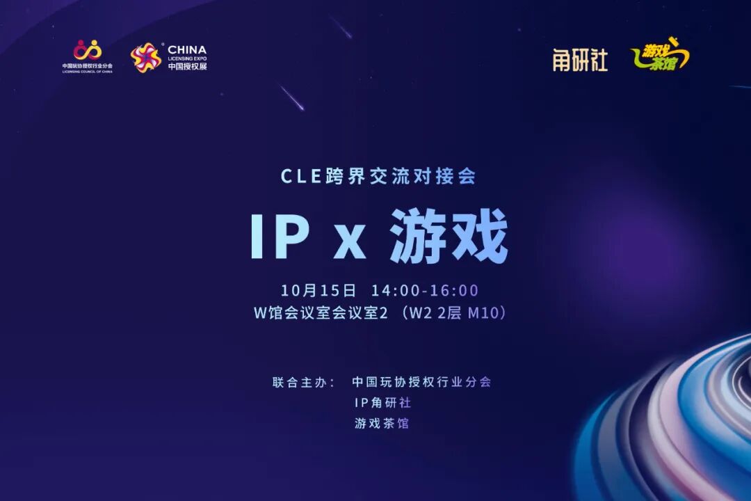 本次 CLE 中国授权周,也邀请了行业媒体游戏茶馆和IP角研社一起策划了 IP×游戏交流对接会。活动将以嘉宾主题分享和精准对接的形式举办,邀请各行业有意在数字授权合作方向探索的嘉宾积极参与交流。