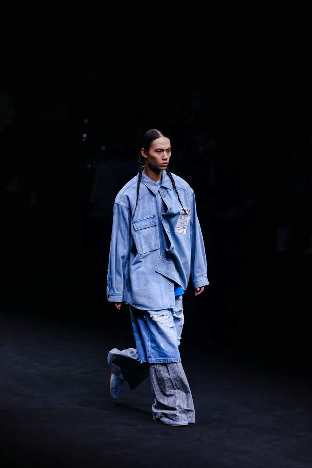 2026春夏主推系列以海洋为核心灵感,融合东方哲学中“虎鲸精神”的勇敢、力量与凝聚,通过简约的设计语言,诠释当代时尚与可持续共生的未来愿景。色彩采用以海洋层次为灵感的分层色彩,海平面之浅蓝、浅海之蔚蓝、深海之墨蓝,搭配环保洗水牛仔的自然褪色质感,采用宽松版型,流畅的剪影诠释着海洋带来的自由感。而面料上则选择环保洗水牛仔布,采用节水工艺与有机棉混纺,部分面料源自回收海洋塑料再生纤维,体现“从海洋回归海洋”的闭环理念。牛仔洗水工艺同样采用激光打磨与臭氧洗水技术,配合使用可降解材料和环保纸制造的标签与包装,而从大大地降低水与化学品使用。