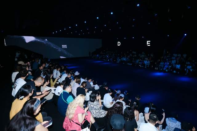 红庭秀场标志性红色立方体外观活力十足,与马克华菲敢为人先的品牌精神相得益彰。场内高挑空间搭配极具延伸感的T台,辅以先进灯光音响设备,营造出沉浸式时尚氛围,精准烘托海洋环保主题。当虎鲸精神蕴含的无畏与探索,与秀场空间美学相遇,一场视觉与听觉交织的时尚之旅就此展开 —— 既全方位呈现设计成果,更成为品牌理念传播的绝佳载体。
