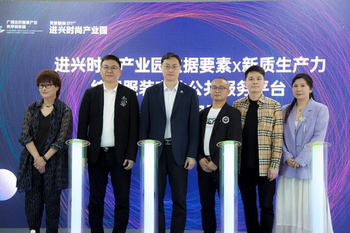 启动仪式上,由中共清远市委常委、秘书长、统战部部长林科聪,天安智谷科技发展集团董事长赖建尧,纺织服装产业服务平台梧桐台创始人王棪,广东工业大学现代服装产业学院院长卢新燕,广东纱纤亿信息科技股份有限公司副董事长王卓辉,内衣视界出品人、内衣黑马商学院执行院长蔡文敏共同启动了“天安智谷•进兴时尚产业园数据要素X新质生产力纺织服装产业公共服务平台”。这个平台旨在整合各方资源,利用大数据和其他新兴技术,推动纺织服装产业的创新发展,提升整个产业链的竞争力和生产效率。