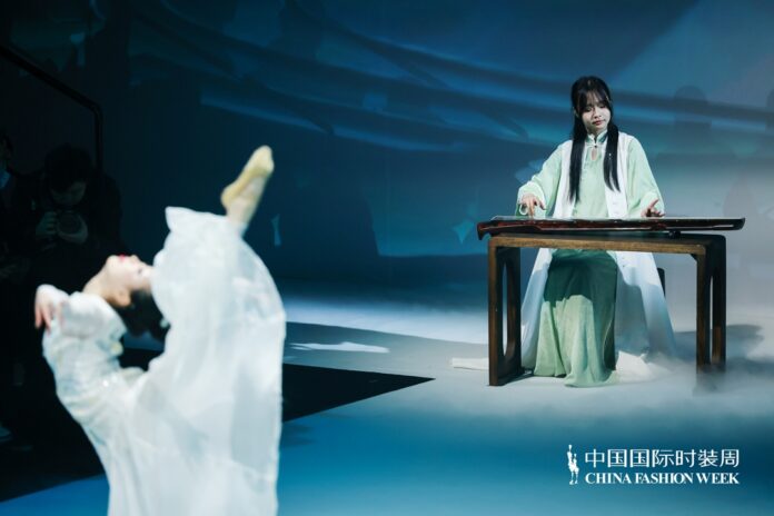 在青年古琴演奏家赵子宁和古筝演奏家赵雨萌的一首琴筝和鸣《西洲曲》下,由第72届世界小姐中国区总冠军刘婉婷领衔的GUANJU关雎记新国风发布正式拉开帷幕。设计师关亚争把中国传统文化中的“山水” “园林” “花卉” “植物” “祥瑞” “宝相” “丝绸” “织锦”等设计元素与装饰符号作为本次创作表达的重要灵感之一。本次系列服装设计作品是传统文化与时代审美的一种共生研究,结合古人“观物取象”“象以尽意”的哲学思维智慧,立足当下审美风格潮流,以服装为载体,酌古沿今。