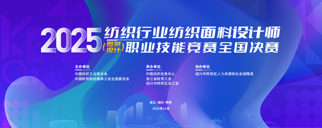 为大力弘扬劳模精神、劳动精神、工匠精神,培养纺织领域的高技能人才,2025年纺织行业纺织面料设计师(图案设计)职业技能竞赛全国决赛将于11月2-4日在浙江省绍兴市柯桥区举行。本次竞赛由中国纺织工业联合会、中国财贸轻纺烟草工会全国委员会主办,中国纺织信息中心、浙江省财贸工会、绍兴市柯桥区总工会承办,绍兴市柯桥区人力资源和社会保障局协办。