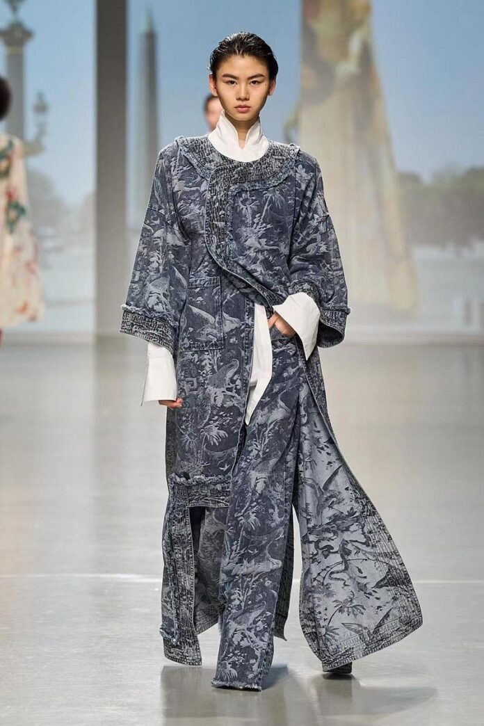 设计师巧妙地将牛仔面料的潜力发挥到了极致,将中国古典浪漫的元素与西方潮流现代感交织在一起,以革新的手法重新诠释了牛仔时尚,每一个剪裁绘制出一幅幅令人难忘的时尚画卷,每一件作品都是东西方文化融合的赞歌,展现了提花牛仔面料在高级定制时装中的无限可能。