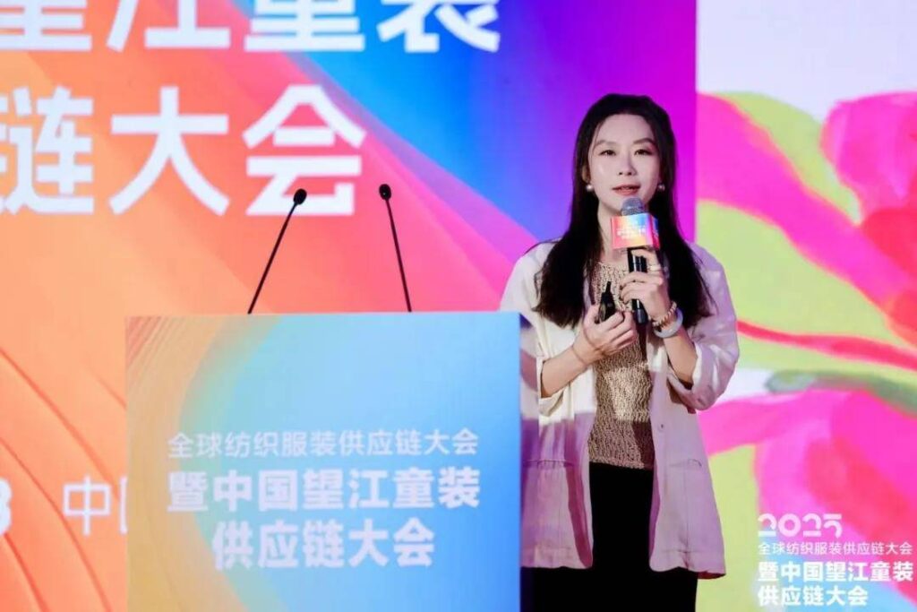 常州美胜生物材料有限公司总经理纪俊玲聚焦“植物源绿色功能新材”,解锁童装开发新可能。她详细解析了天然植物染料、香味微胶囊、保湿护肤整理剂、卫生防护整理剂、环保阻燃整理剂等特色产品的性能优势:以天然植物为原料,来源广泛且具备一定保健功效,生产过程无毒无害,能够确保纺织品与人体接触无刺激、不致敏,可广泛应用于内衣、睡衣、儿童防护用品及鞋袜、家居等领域。