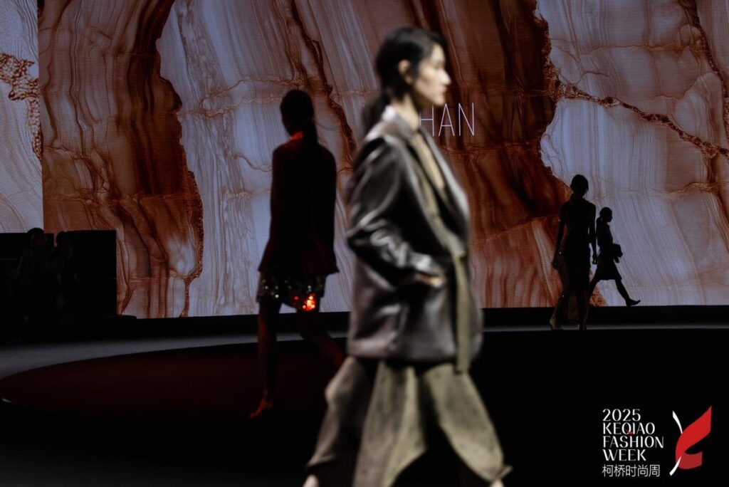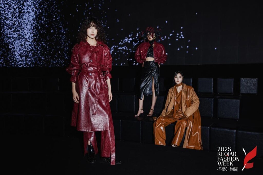 本次发布的实现,亦得益于柯桥当地纺织产业链的协同支持。绍兴众蔚纺织品有限公司、绍兴花册纺织有限公司、绍兴鲁宏纺织品有限公司与绍兴奈恩针纺织品有限公司共同为系列提供了专业的面料与工艺保障。它们在麂皮绒、皮革及镂空蕾丝等关键材质上的研发应用,为设计师从概念到成衣的完整转化奠定了重要基础。