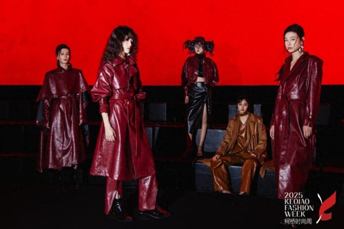 本次发布的实现,亦得益于柯桥当地纺织产业链的协同支持。绍兴众蔚纺织品有限公司、绍兴花册纺织有限公司、绍兴鲁宏纺织品有限公司与绍兴奈恩针纺织品有限公司共同为系列提供了专业的面料与工艺保障。它们在麂皮绒、皮革及镂空蕾丝等关键材质上的研发应用,为设计师从概念到成衣的完整转化奠定了重要基础。