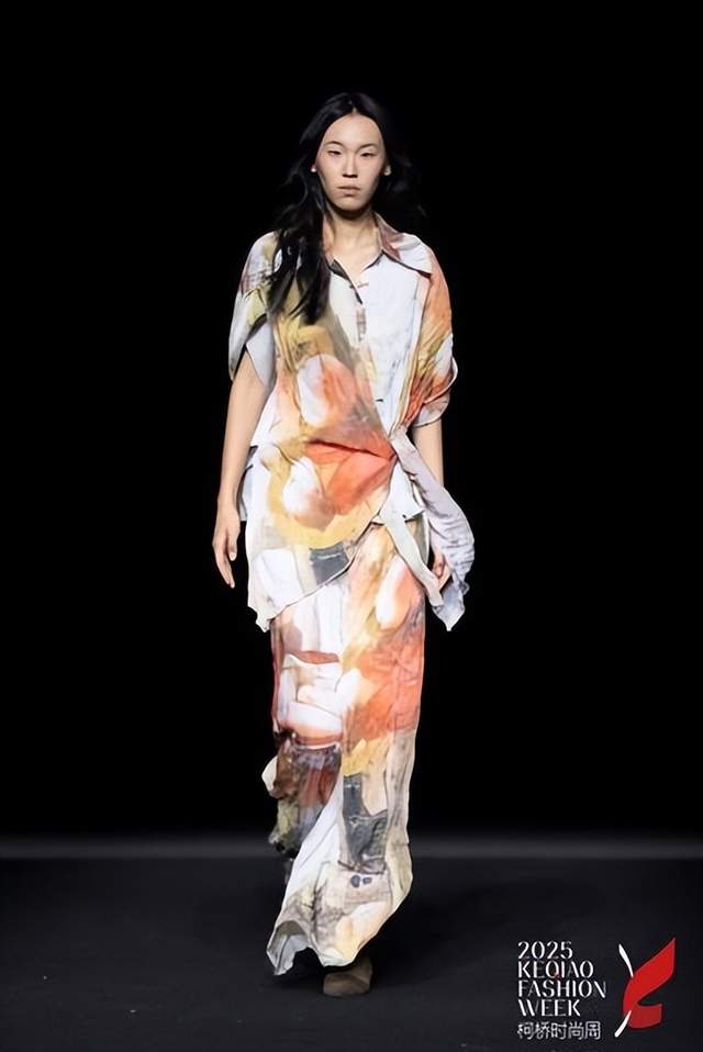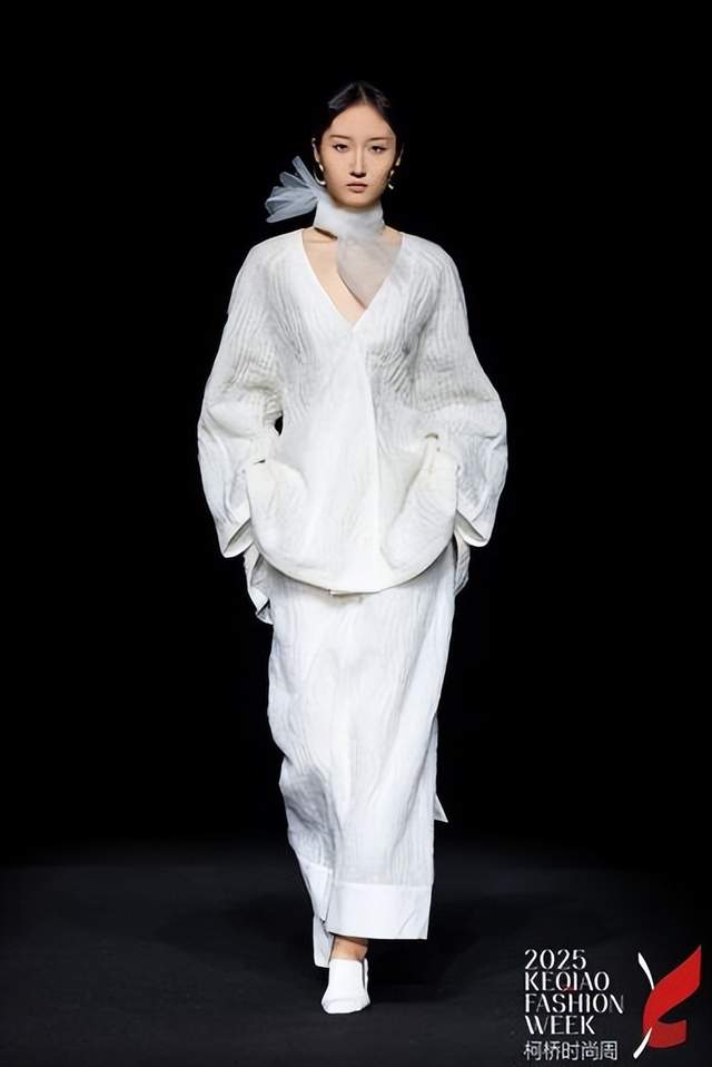 在为期一周(11月6—12日)的时尚盛宴中,18场品牌发布会汇聚了生态自然、传统国风、个性前卫、现代人文、未来探索等多元时尚风格,如同一部交响乐的不同乐章,共同奏响了“洄响”主题的丰富内涵。这些风格迥异却又内在统一的呈现,不仅全面展示了柯桥纺织面料应用的广度与深度,更彰显了本土设计力量在全球化语境下的独立思考与创造性转化。