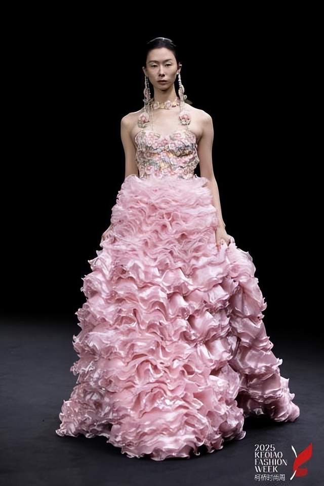 在柯桥鲁镇上演的兰亭序曲——李薇高级时装发布会以《兰亭集序》中“飘若浮云,矫若惊龙”的笔墨意趣为灵感,将书法韵律与人体形态巧妙相融。通过柯桥十余种特殊面料,结合真丝绡、网纱等材质,在变化中构建秩序,以纤细笔触勾勒东方女性的灵动之美。设计以中国传统文化为根基,依托国际化剪裁与简约廓形,使文人风骨、江南水墨意蕴与五正色的东方色彩体系,在当代时尚语境中重获新生。