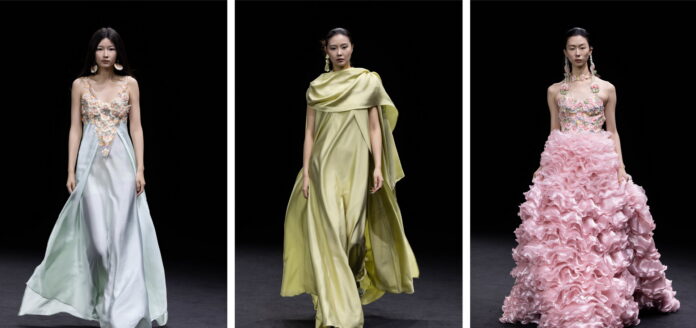 永恒·葵夏&Shalimar Zhang 2026新品发布会以金色、经典黑与粉色构建多元色彩矩阵,分别诠释华贵、神秘与浪漫。全系采用重工刺绣、亮片与立体暗纹等工艺,融合传统手工与现代设计。风格定位复古奢华与现代摩登相结合,打造适用于高端晚宴与时尚派对的永恒礼服。