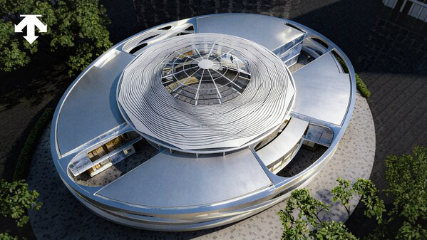 迪桑特”未来之城”的核心,源自一个永恒的几何概念——莫比乌斯环。整个空间以此为设计母体,结合”一切始于滑雪”的品牌基因,如同无限延展的雪道,形成了不断向前延伸、周行不殆的视觉体验。这不仅是空间的物理形态,更是迪桑特品牌精神的建筑化表达:四座主题建筑通过构思精妙的连廊有机串联,滑雪、高尔夫、全地形都市机能与儿童世界的场景在此交融,象征着品牌对专业运动生态的完整构建与融会贯通。整体动线设计超越传统零售逻辑,引导来访者经历从探索、钻研、沉淀到启迪的完整叙事循环。每一次来访,都是来访者与品牌运动理念的一次全新对话。