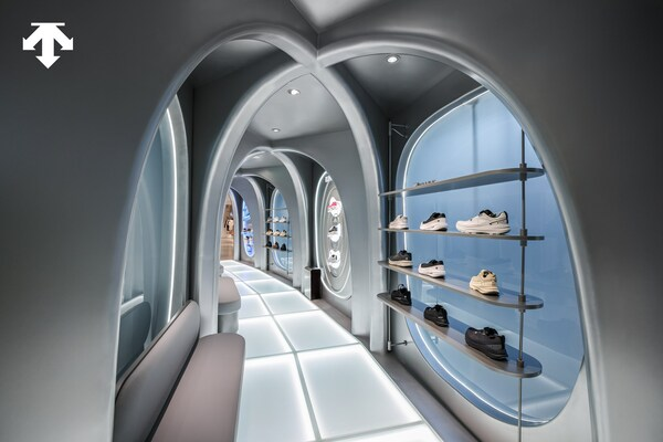 沿着莫比乌斯环所构建的连续动线,迪桑特将整座旗舰店划分为四个彼此独立又相互呼应的主题空间。不同于传统零售中的品类划分,这四个空间围绕运动体验在不同阶段中的感受与需求展开,从对运动本源的感知唤醒,到专业能力的集中呈现,再到匠心工艺的沉淀与代际传承的想象。每一处空间聚焦一种最具代表性的场景,以高度提炼的设计语言与陈列表达,将品牌多年来在专业装备研发、运动文化构建及精神价值层面的积累,转化为清晰可读的空间经验。